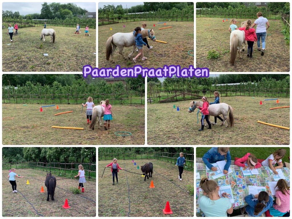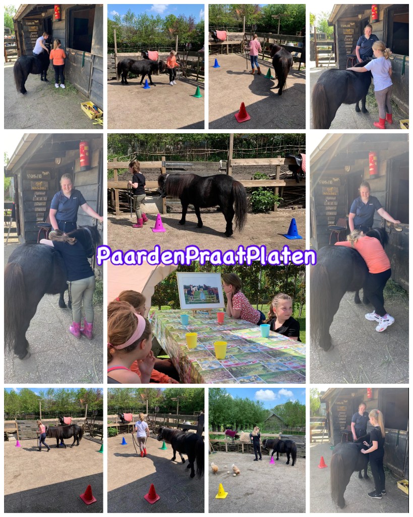 We doen dat d.m.v. een verhaal, verschillende PaardenPraatPlaten en allerlei speloefeningen met de pony’s.